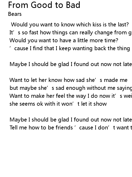 | 歌曲 | From Good to Bad |