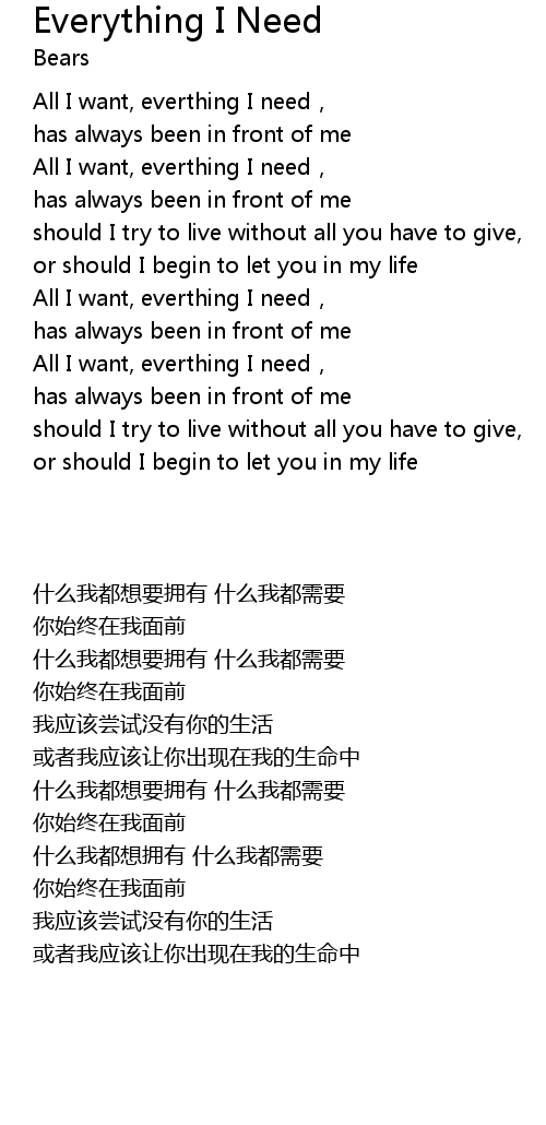 | 歌曲 | Everything I Need |