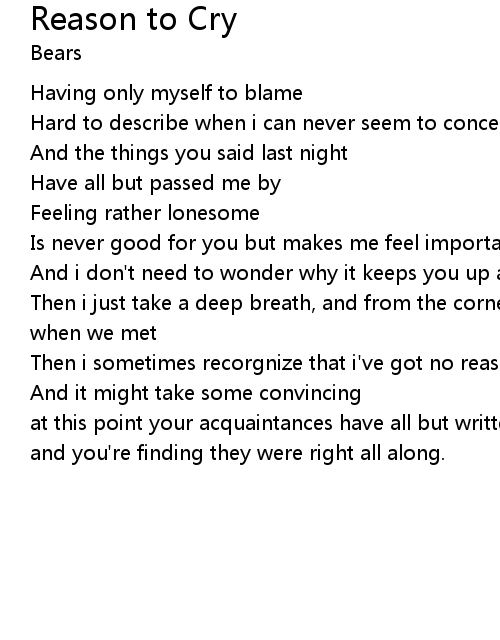 Then i sometimes recorgnize that i've got no reason to cry |