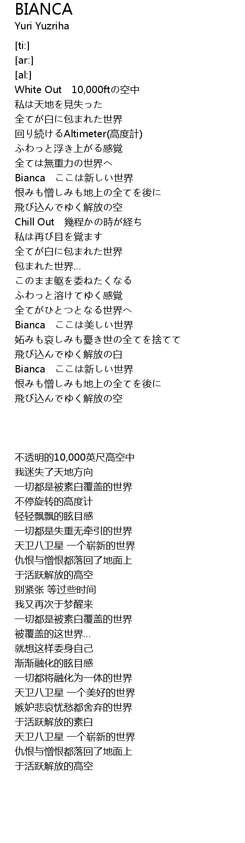 | [01:49.85] | Bianca ここは新しい世界 |