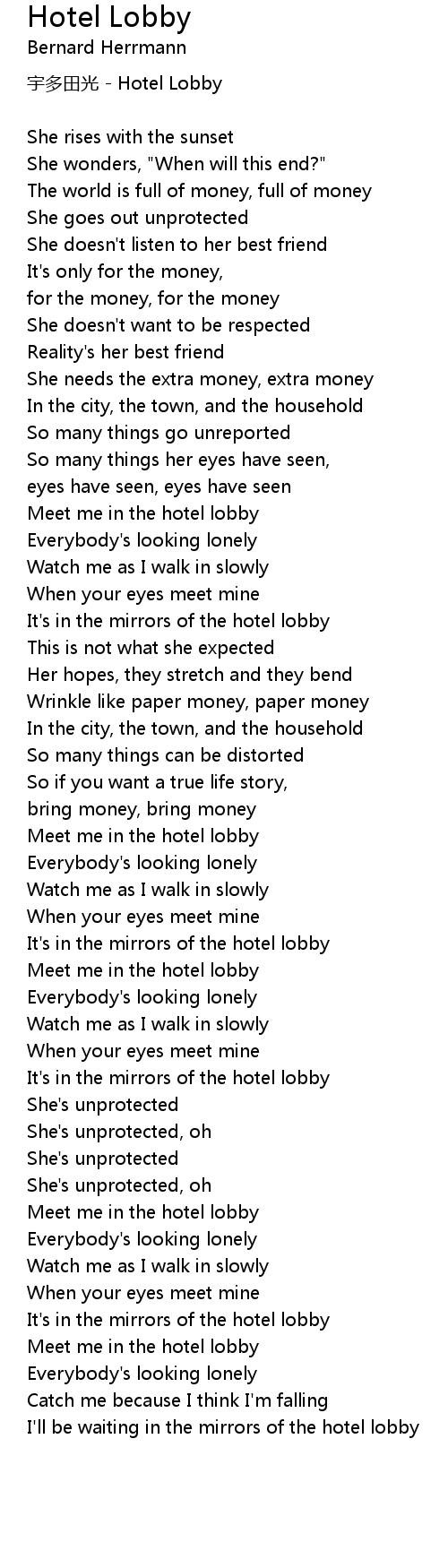 | I' ll be waiting in the mirrors of the hotel lobby |