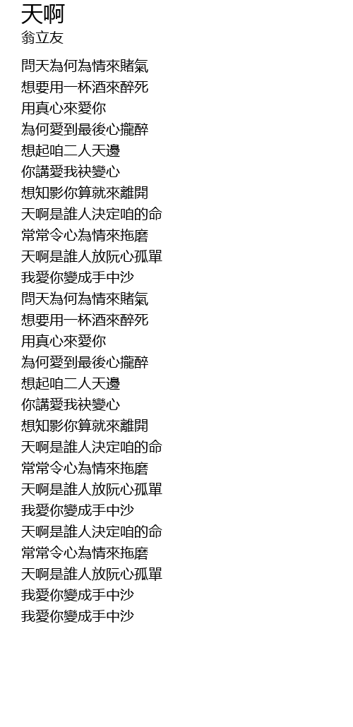 | [03:21.103] | 天啊是誰人放阮心孤單 |