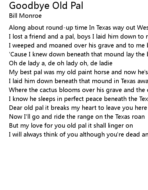 | ' Cause I knew down beneath that mound lay the best pal I ever had | |
