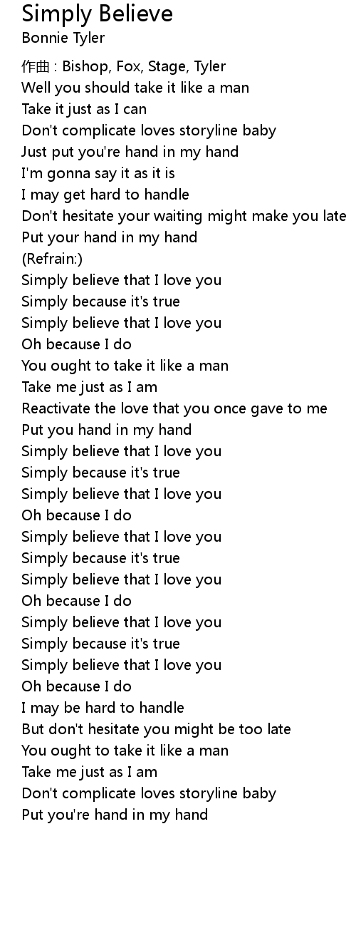 | Simply believe that I love you | |