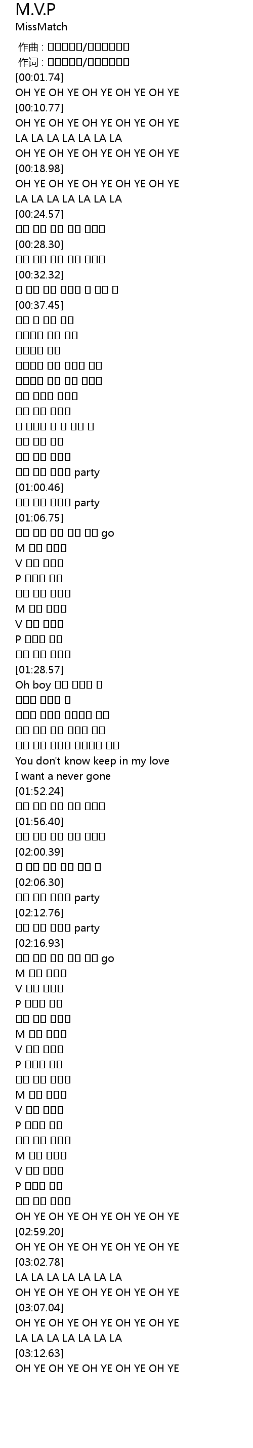| [03:04.83] | OH YE OH YE OH YE OH YE OH YE |