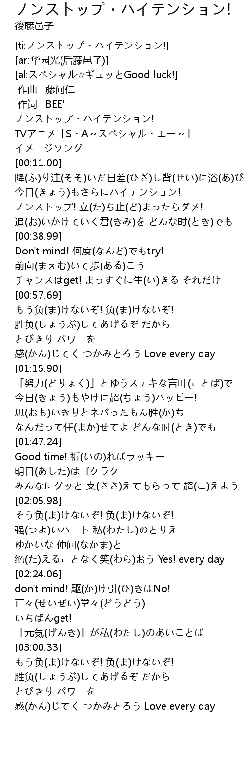 | [00:01.00] | ノンストップ・ハイテンション! |