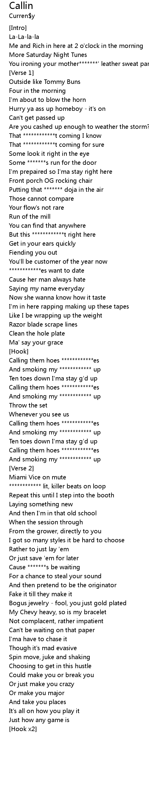 And smoking my ************ up |