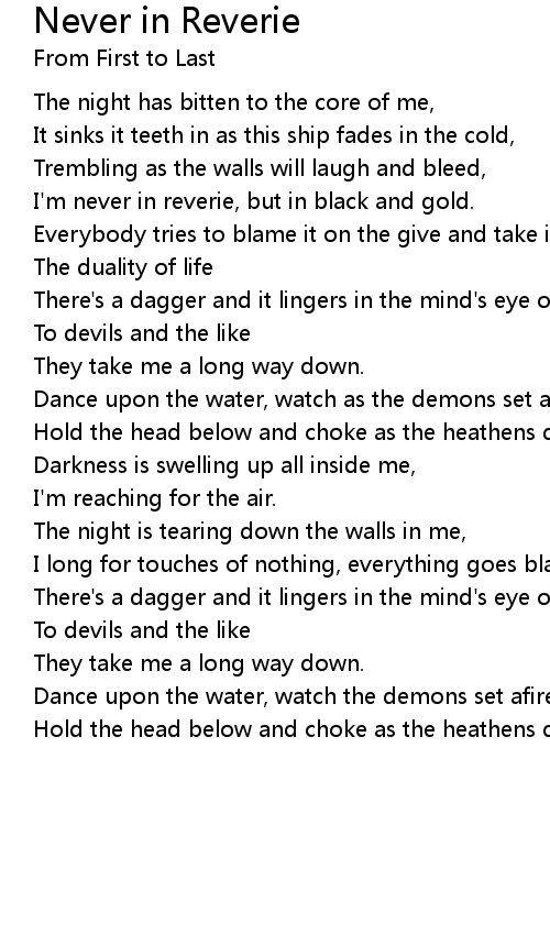 I long for touches of nothing, everything goes black as I bleed, |
