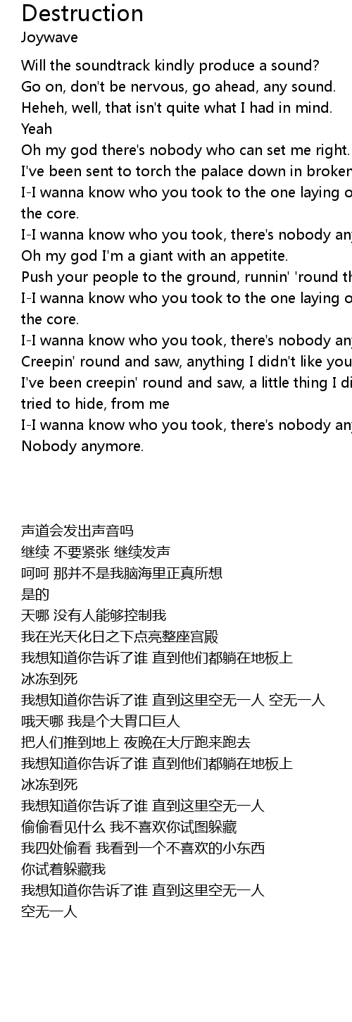 I-I wanna know who you took, there's nobody anymore, nobody anymore. |