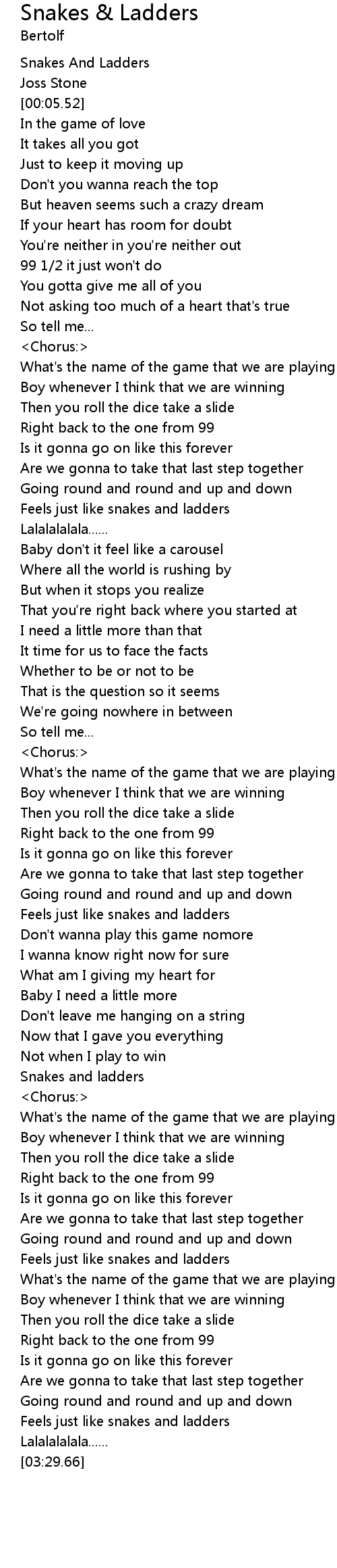 [02:27.69] Snakes and ladders