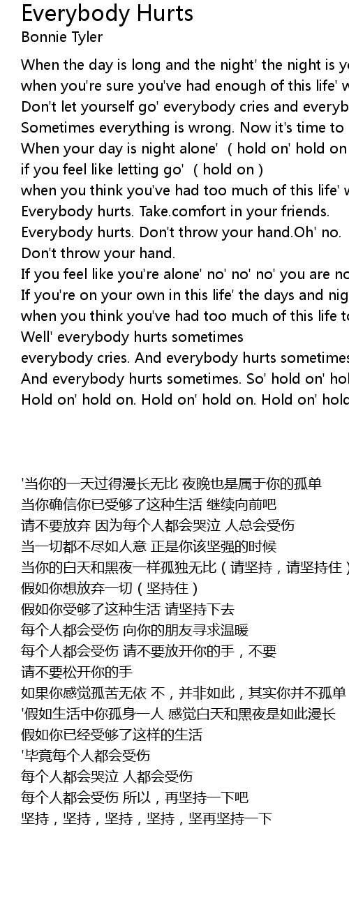 | [04:12.67] | And everybody hurts sometimes. So' hold on' hold on. |