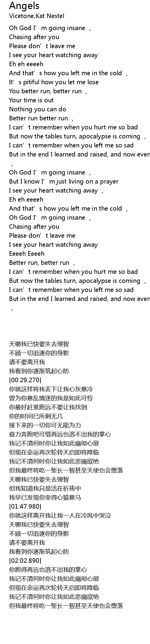 | [02:19.440] | But in the end I learned and raised, and now even Angels could be bad , |