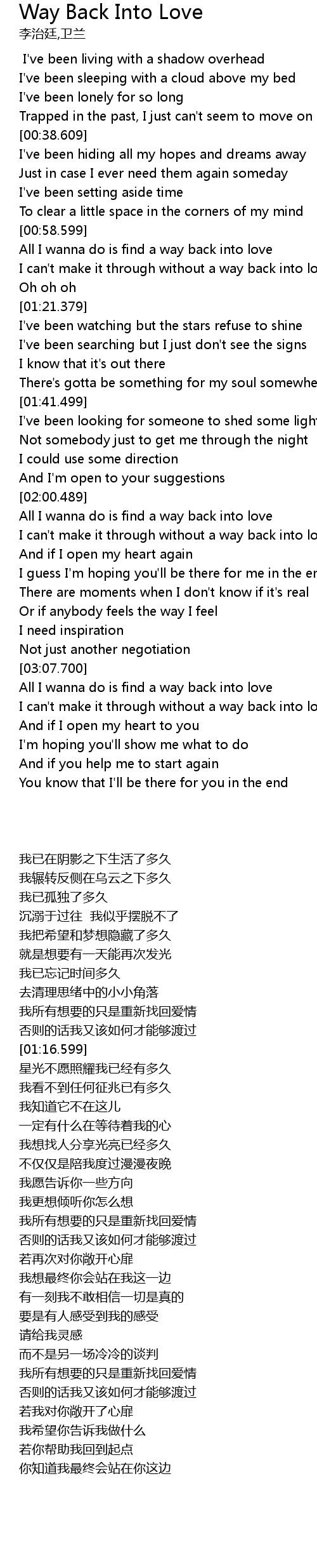 I can't make it through without a way back into love |