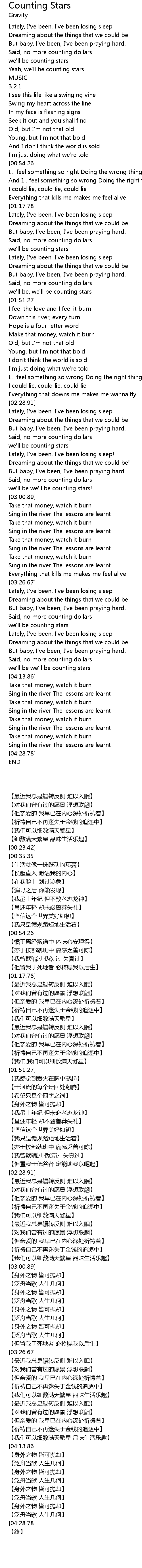 | [01:47.07] | we' ll be, we' ll be counting stars |