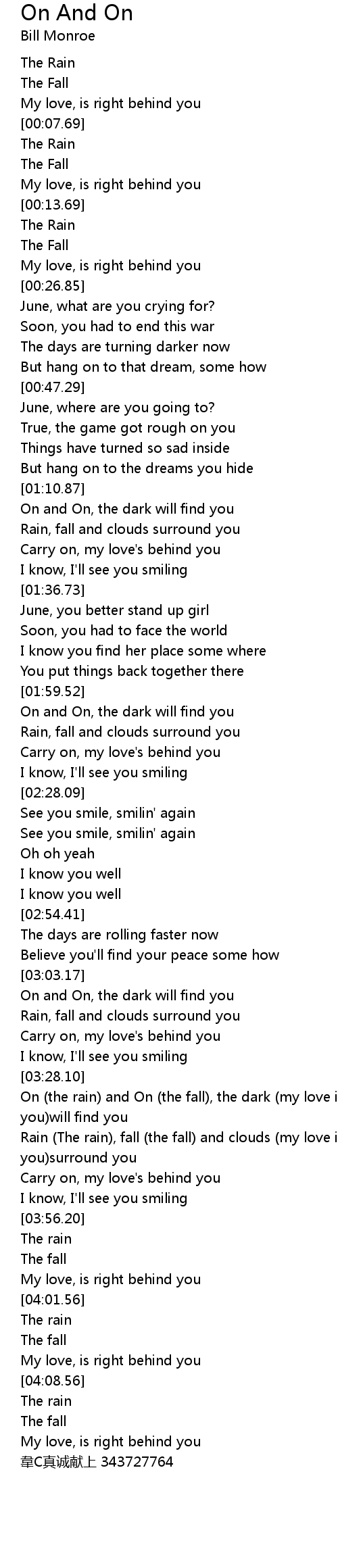 | [03:35.93] | Rain The rain, fall the fall and clouds my love is right behind you surround you |