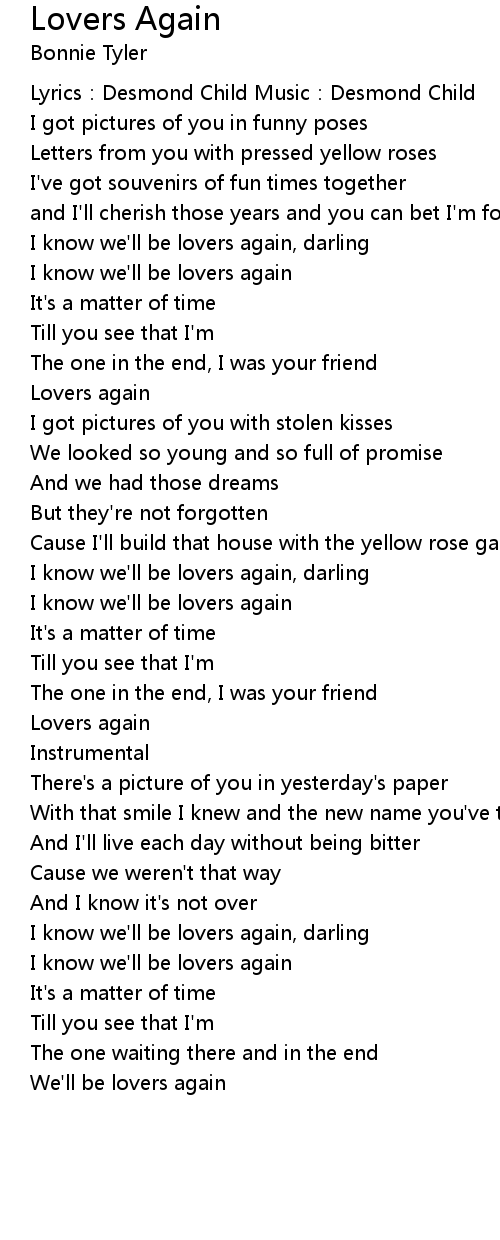 | I know we' ll be lovers again | |