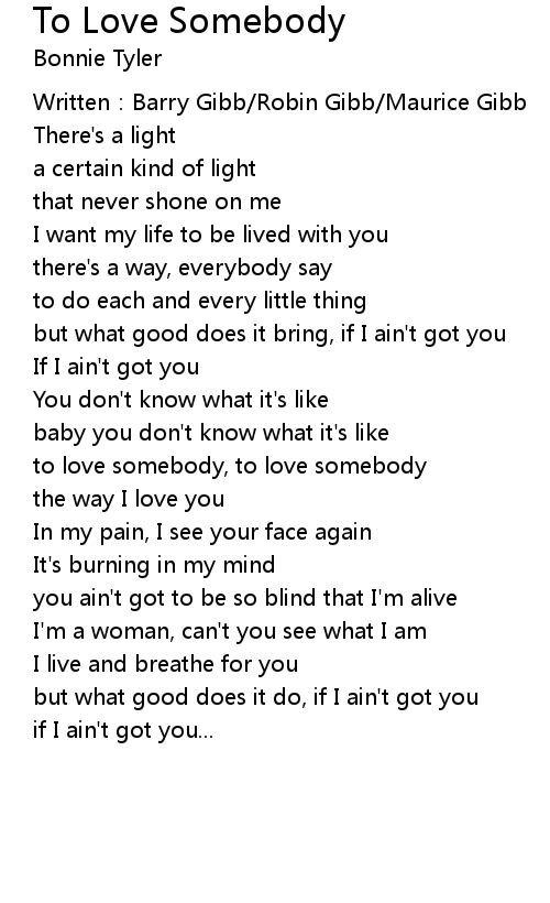 | 歌曲 | To Love Somebody |