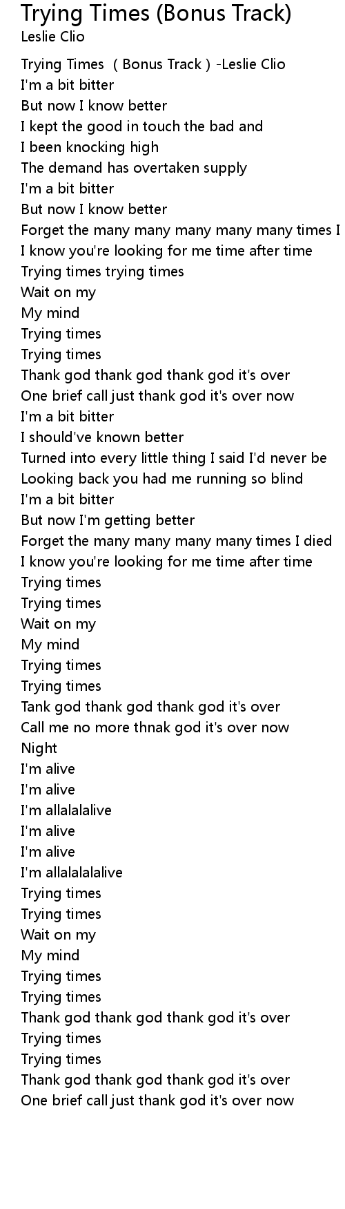 | [00:00.480] | Trying Times Bonus Track Leslie Clio |