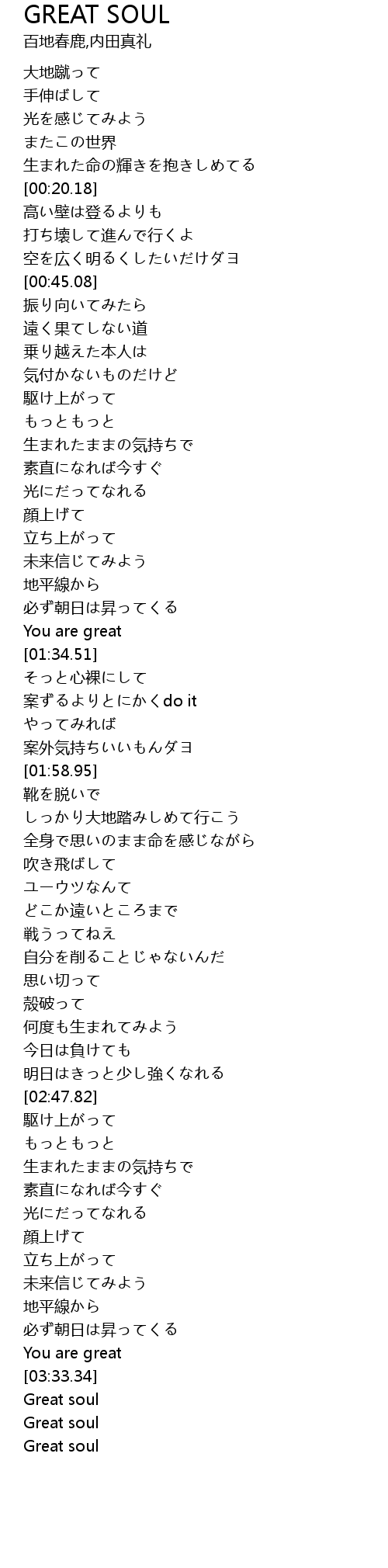 | [03:35.10] | Great soul |