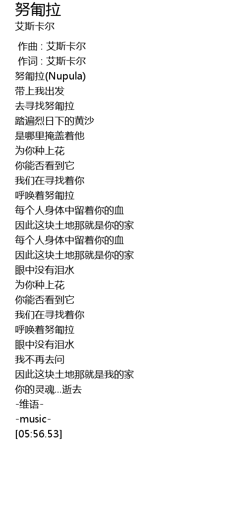 | [00:04.78] | 努匍拉(Nupula) |