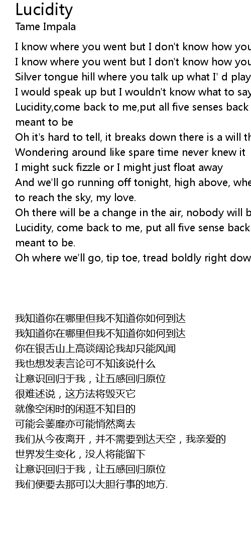 Lucidity,come back to me,put all five senses back to where they're meant to be |