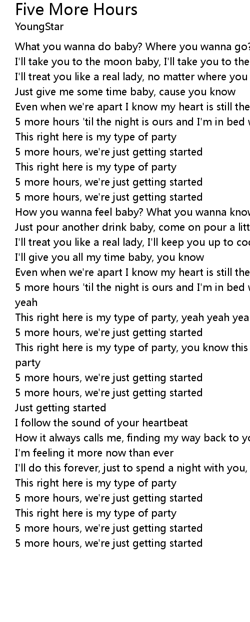 5 more hours 'til the night is ours and I'm in bed with you, this is yeah |