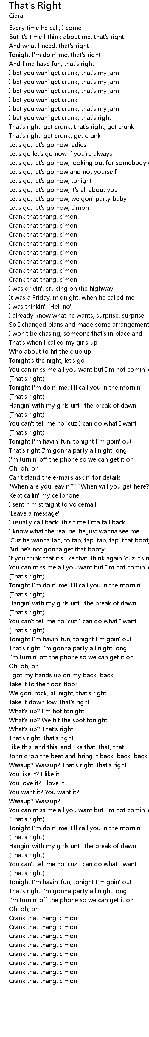 That's Right 歌词