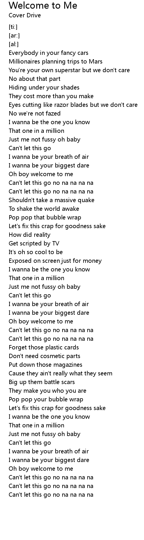 Oh boy welcome to me |