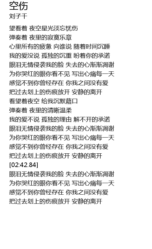 | [00:25.53] | 望看着 夜空星光淡忘忧伤 |