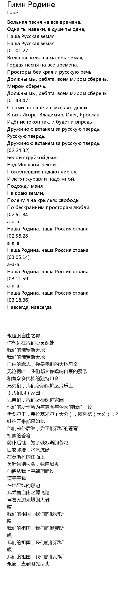 | [03:15.65] | 我们的祖国,我们的俄罗斯 |