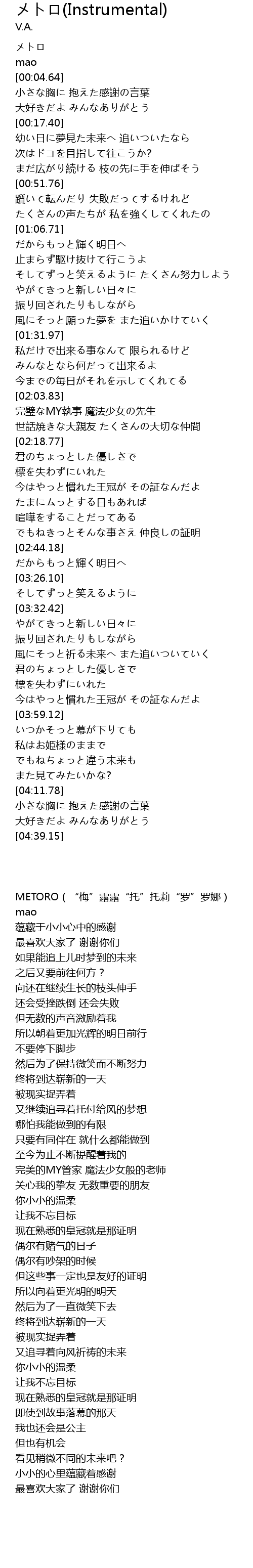 | [00:00.36] | METORO(“梅”露露“托”托莉“罗”罗娜) |