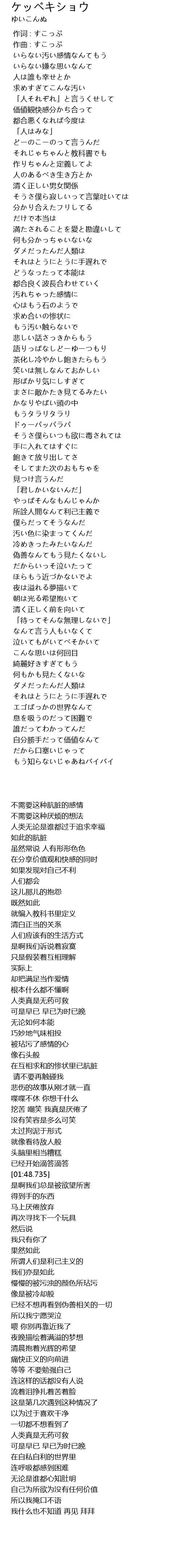 | 歌曲 | ケッペキショウ |