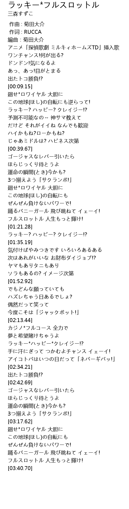 | [02:21.63] | ラッキー*ハッピー*クレイジー!? |