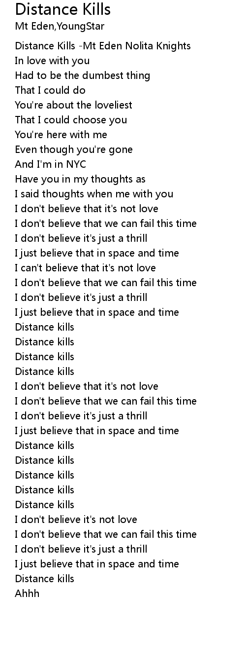 | [01:31.12] | Distance kills |