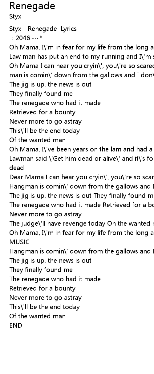 | [00:00.00] | Styx - Renegade Lyrics |