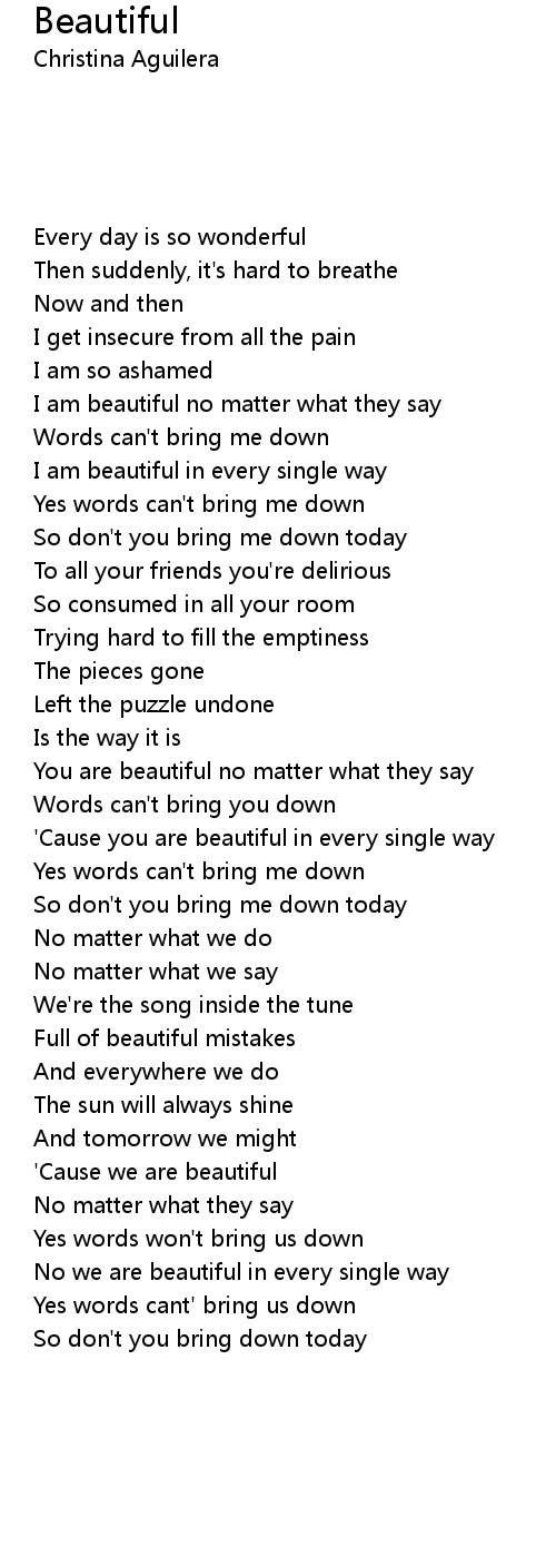 | [02:10.77] | 'Cause you are beautiful in every single way |
