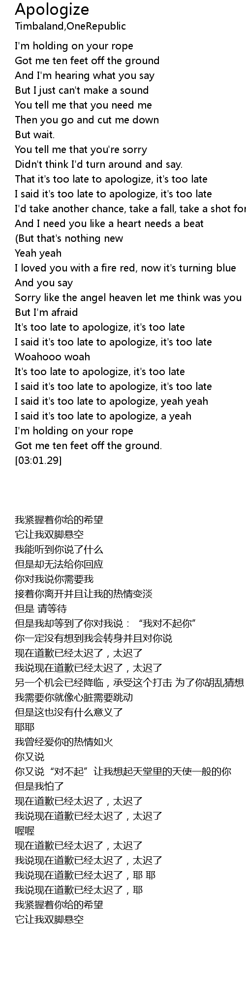 That it's too late to apologize, it's too late |
