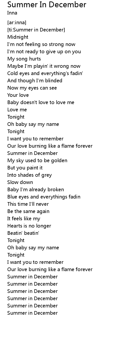 Summer In December 歌词