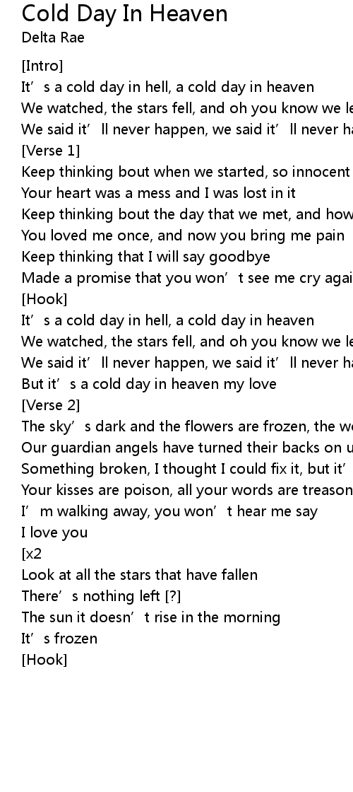 | It' s a cold day in hell, a cold day in heaven | |
