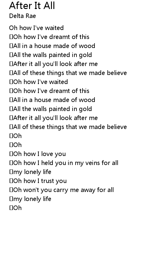 | Oh won' t you carry me away for all | |