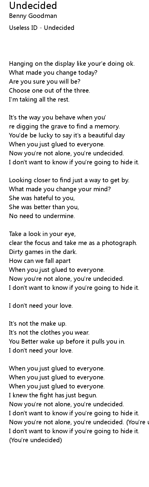 Now you're not alone, you're undecided. (You're undecided) |