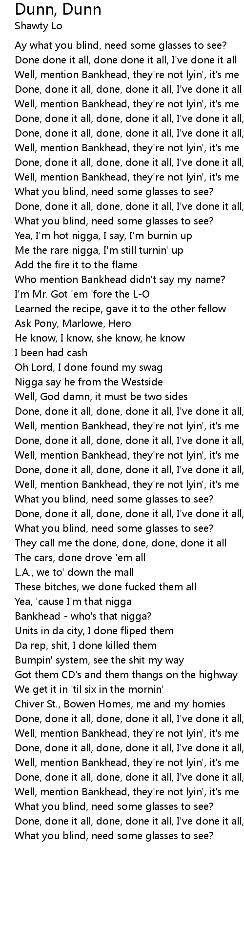 Done, done it all, done, done it all, I've done it all, I've done it all |
