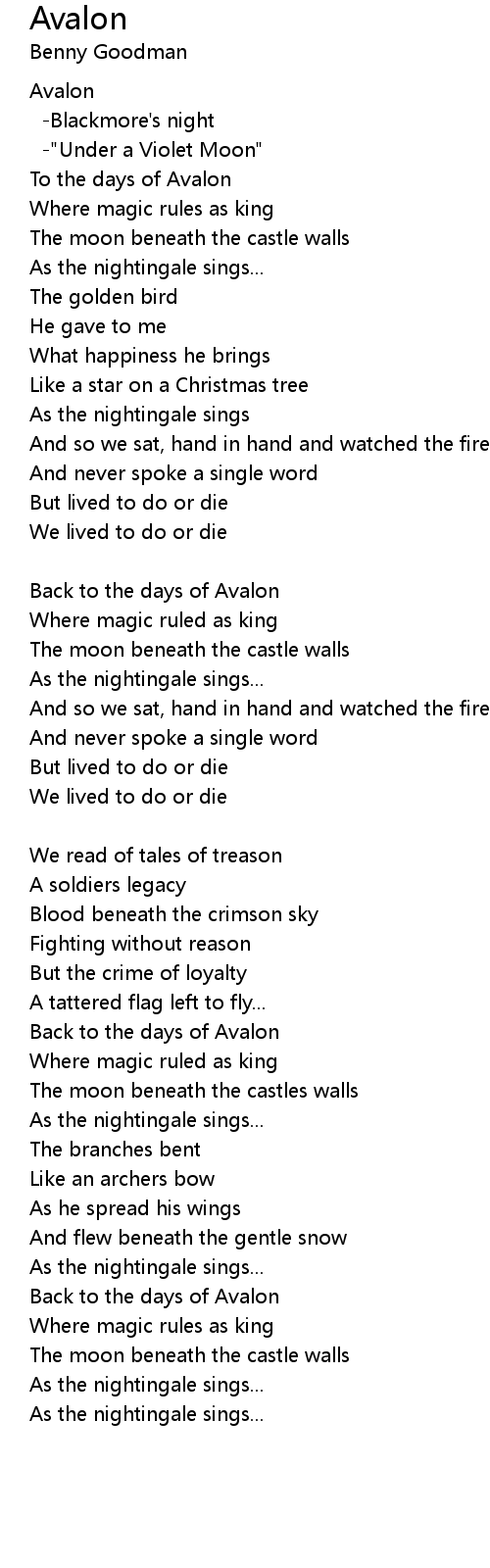 To the days of Avalon |