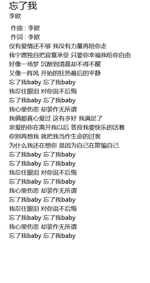 | [03:12.69] | 忘了我baby 忘了我baby |