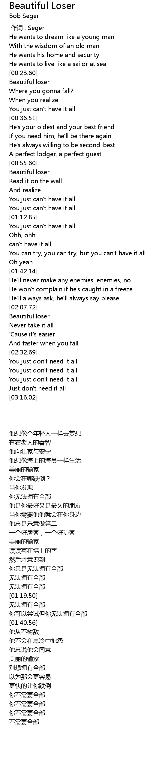 | [02:20.44] | Beautiful loser |