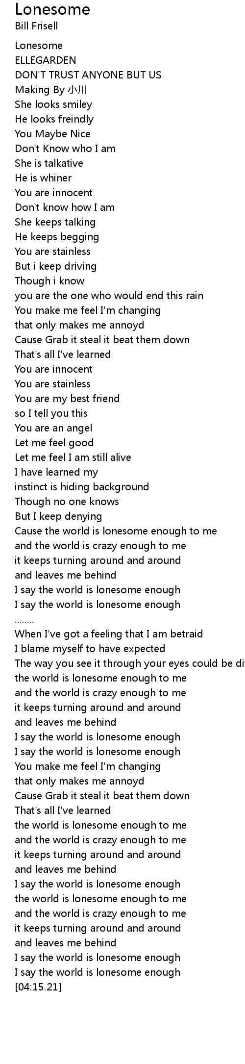 | [00:01.74] | Lonesome |