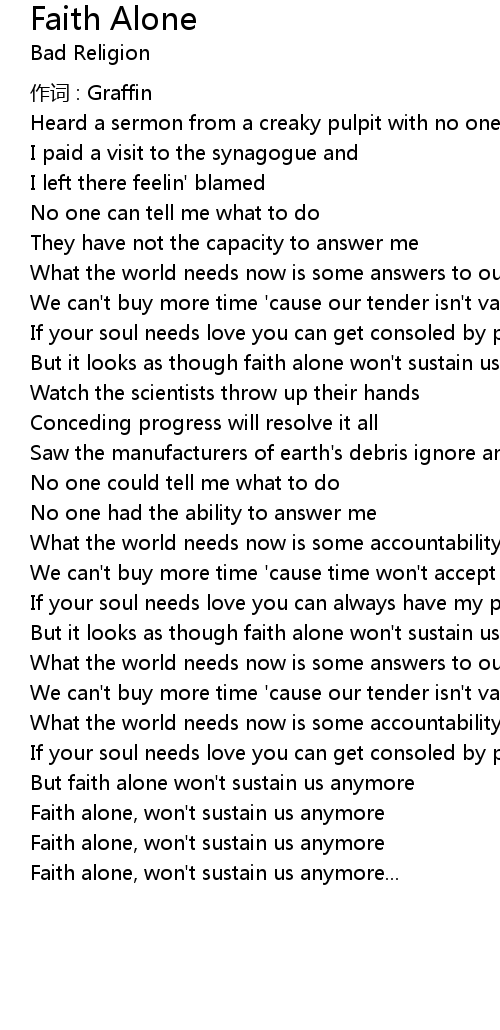 | Faith alone, won' t sustain us anymore | |