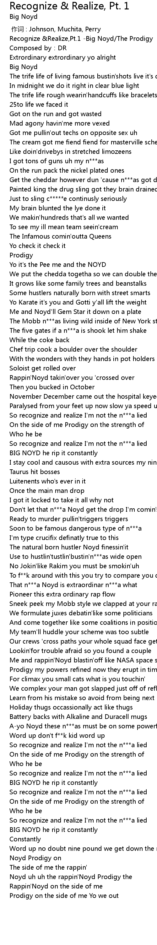 | [00:00.527] | Recognize &Realize,Pt.1 -Big Noyd/The Prodigy |