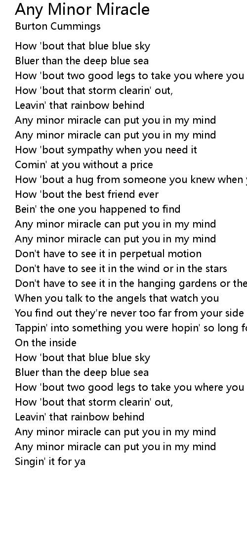 Any minor miracle can put you in my mind |