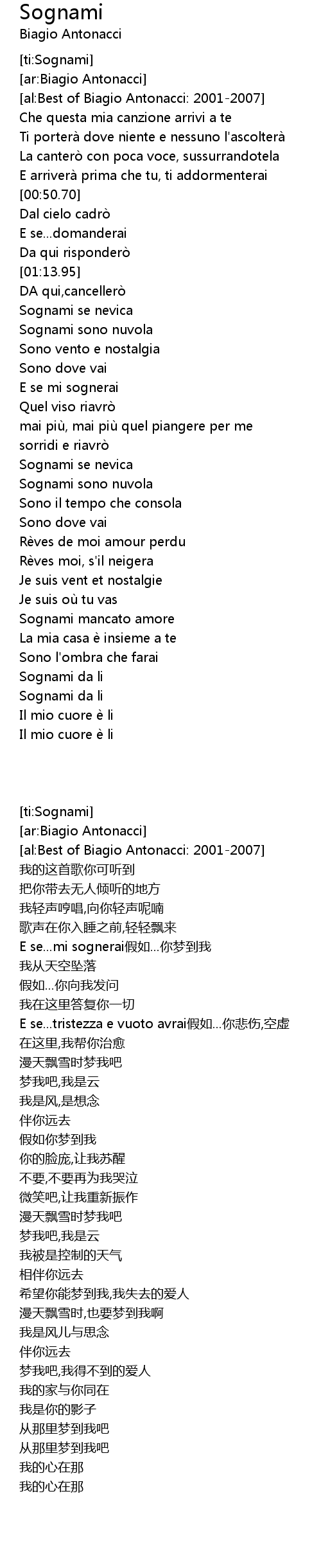 | [00:50.70] | E se...mi sognerai假如...你梦到我 |